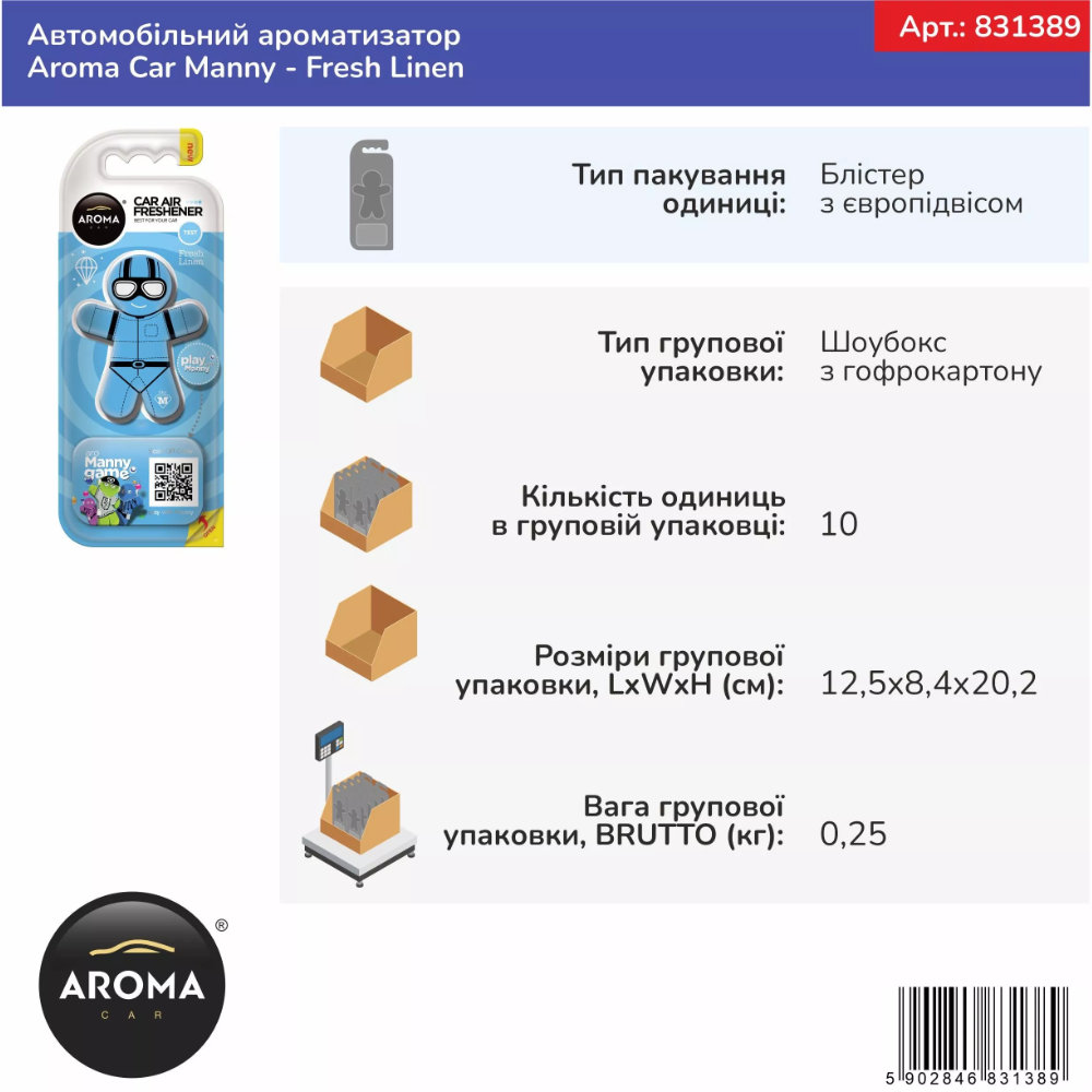 Ароматизатор Aroma Car Manny Fresh Linen: свежесть чистого белья в вашем авто