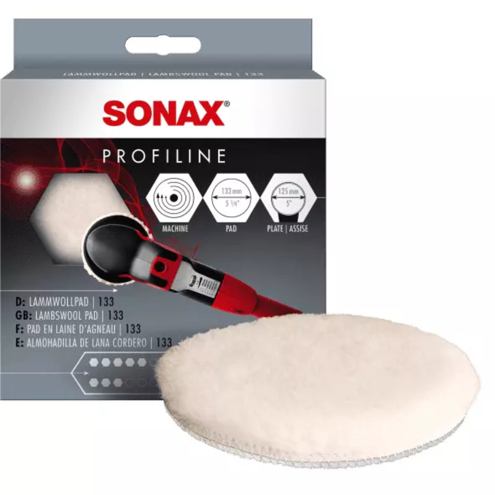Полировальный круг SONAX PROFILINE Lammwollpad 133 (493141) – профессиональный инструмент для интенсивной полировки с использованием абразивных паст.