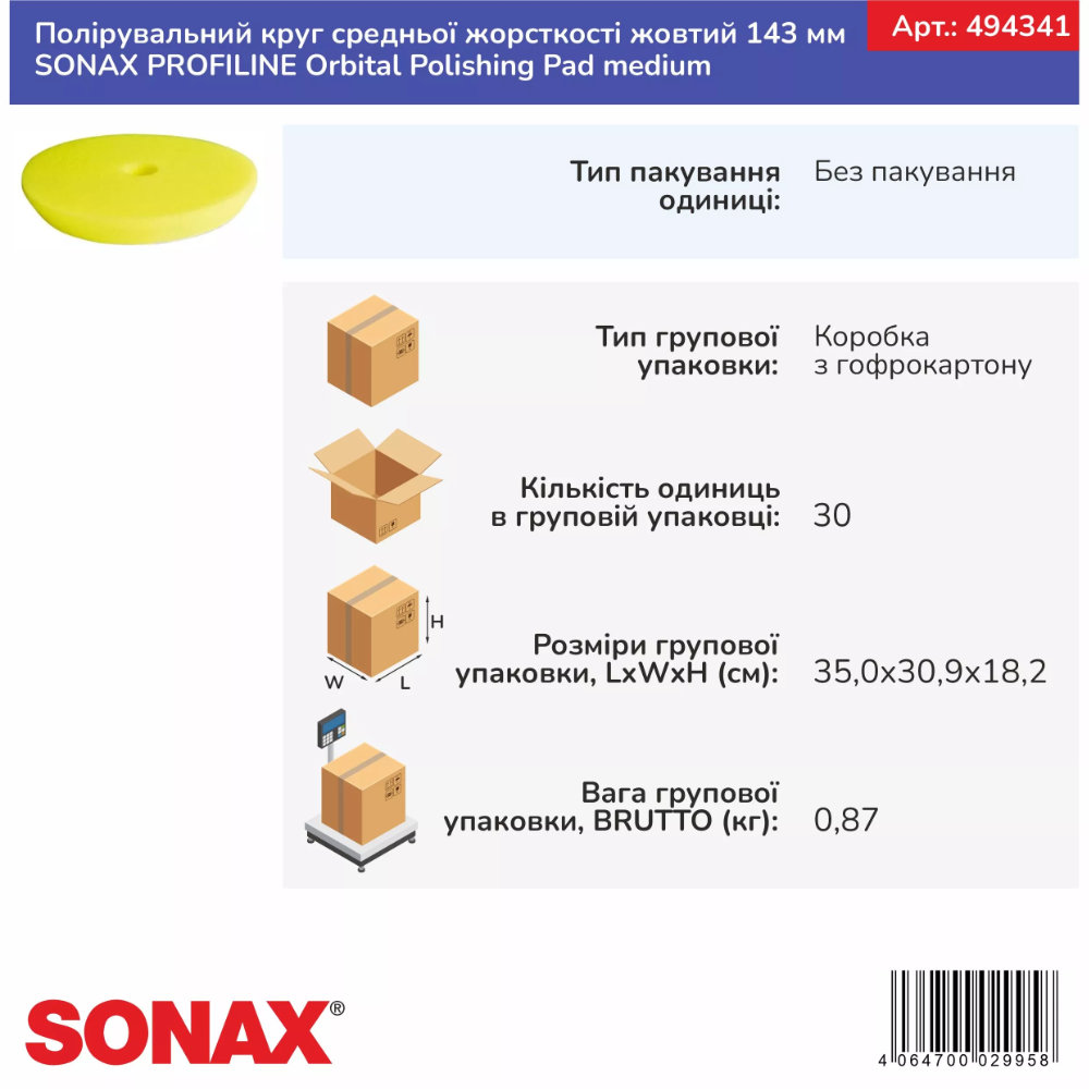 Полировальный круг SONAX PROFILINE Orbital Polishing Pad Medium (494341) – профессиональный инструмент для восстановления ЛКП.
