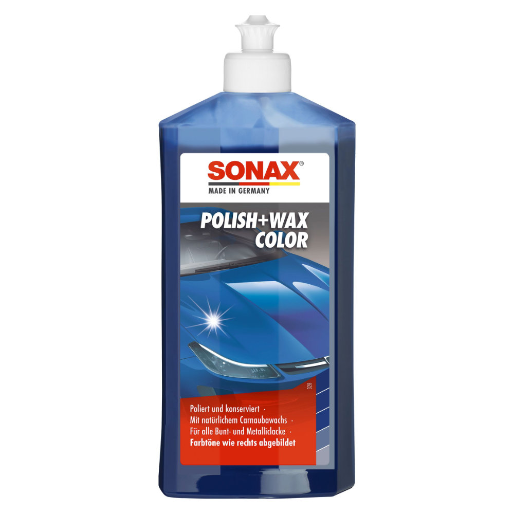 Синий полироль содержит цветные пигменты краски с восковыми компонентами. Он разглаживает, полирует и сохраняет все виды покрытий за один проход. Устраняет небольшие цврапины и обогощает цвет автомобиля. Плохие участки лако-красочного покрытия покрываются цветными пигментами и защищаются от коррозии. Polish +Wax Color придает лакокрасочному покрытию яркий цвет, обеспечивает отличный блеск и долговременную защиту от атмосферных воздействий благодаря натуральному воску карнауба.