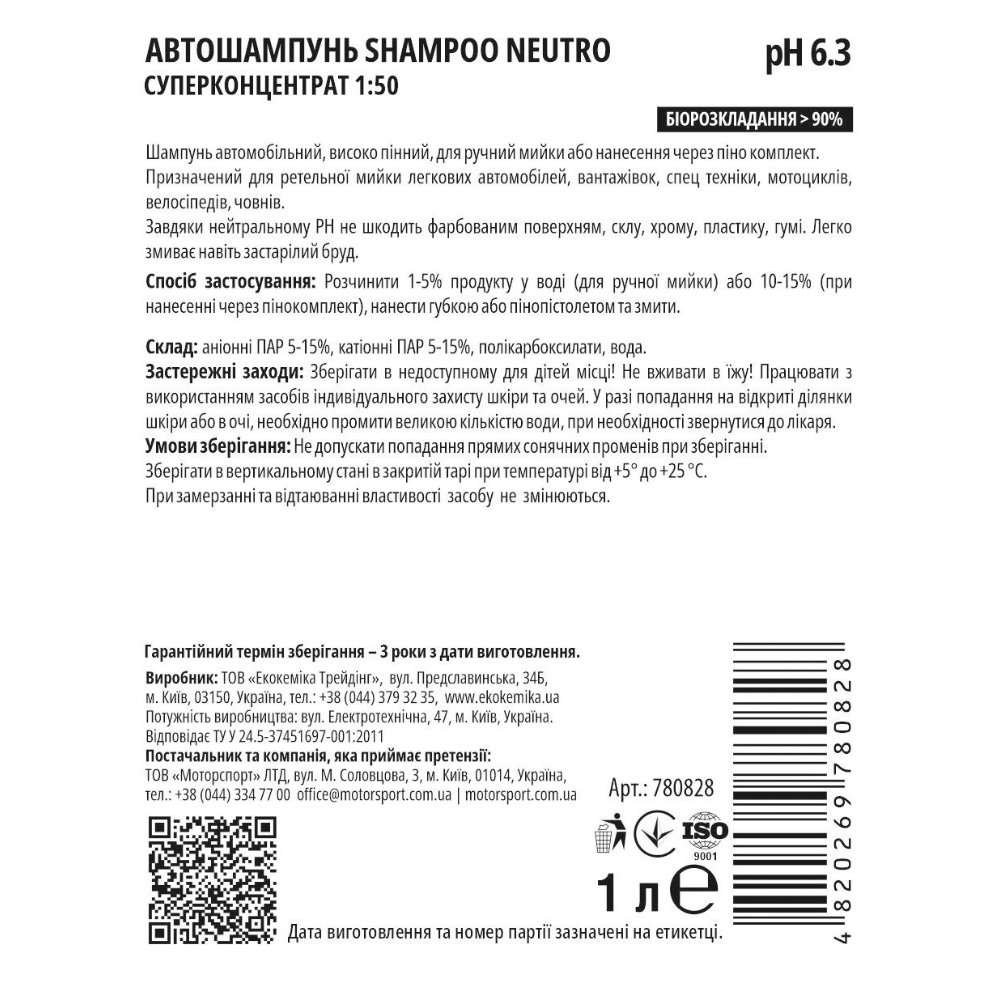 Особливості: Ekokemika — італійський бренд, відомий своїми професійними засобами для догляду за автомобілем. Продукти бренду розроблені з урахуванням сучасних технологій і забезпечують високу якість очищення. Шампунь Pro Line SHAMPOO NEUTRO ідеально підходить для регулярного використання та професійної мийки автомобілів.