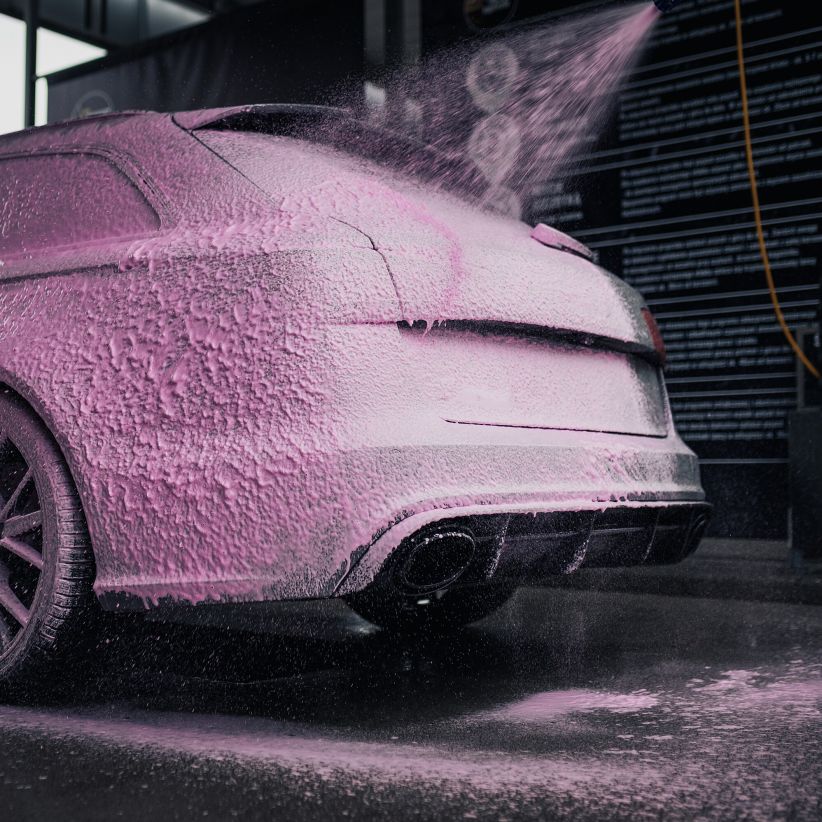 - Ефектний колір: Густа та ряснa піна огортає автомобіль, створюючи ефект «полуничного снігу», який тішить око та додає вишуканості кожному миттю.